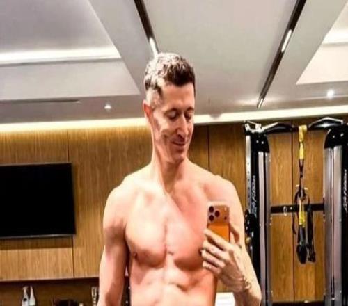 37岁的莱万多夫斯基在社交媒体上分享了一组最新健身房照片