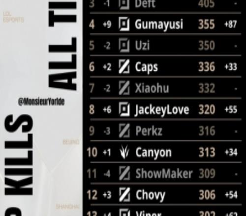 电竞体育11月1报道 外媒统计全球总决赛总击杀数榜单,具体如下: