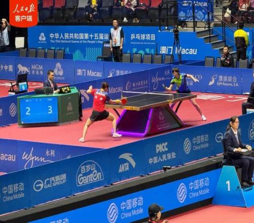据人民日报消息,11月15日晚,十五运会乒乓球项目在澳门银河综艺馆展开两场女单半决赛争夺。