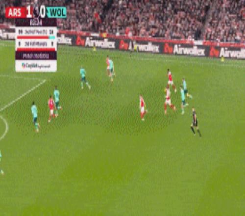 第70分钟,萨卡角球击中远门柱后,弹在狼队门将约翰斯通后脑勺造成乌龙,阿森纳1-0领先狼队。