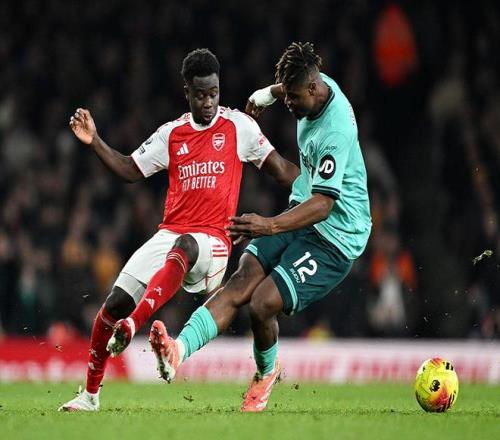 21!阿森纳5分领跑+送垫底队10连败萨卡两造乌龙球+补时造绝杀