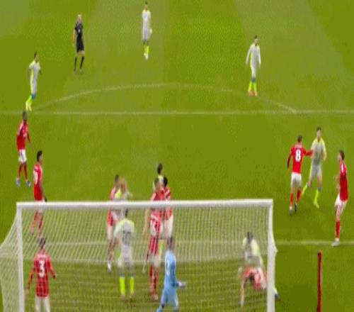 第7分钟,奥多伊左路突破,内切送出传中,伊戈尔-热苏斯、吉布斯-怀特和哈钦森抢点均踢空,皮球滑门而过。