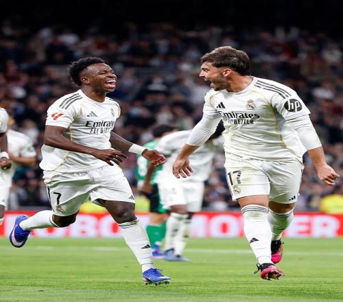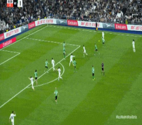 比赛结束,皇家马德里在主场5-1大胜皇家贝蒂斯!