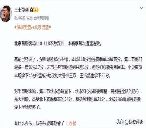 北京爆冷不敌深圳引热议!新赛季首遭连败被轰118分防守最差一战