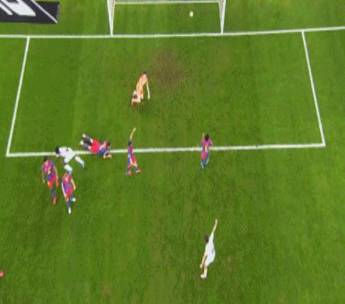 第45+6分钟,角球导致禁区内混乱,贡萨洛倒地破门,皇马2-2!