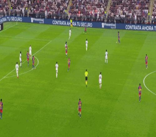 第45+4分钟,佩德里送出直塞,莱万挑射破门,巴萨2-1再度反超!