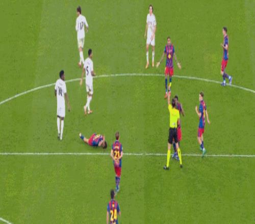 第30分钟,亚马尔突破被断,随后对贝林厄姆犯规
