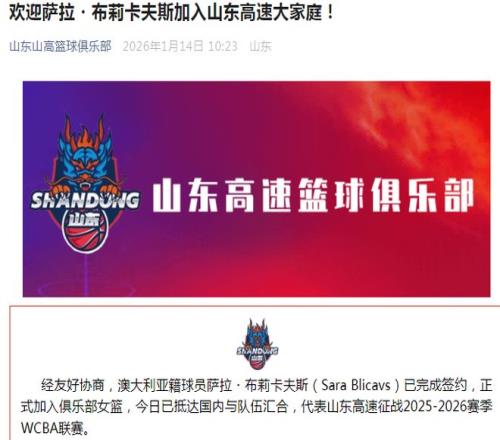 北京时间1月14日,山东女篮在引进超级新星张子宇后,如今官宣签约WNBL两届冠军萨拉-布莉卡夫斯,且此前她们刚刚终结卫冕冠军广东女篮的开局14连胜,山东女篮继续升级阵容自然是剑指冲冠。