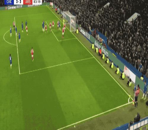 面对切尔西的强势反扑,阿森纳主动压上,第40分钟,萨利巴化身带刀侍卫,禁区内的射门颇具威胁,皮球砸在球网上方。